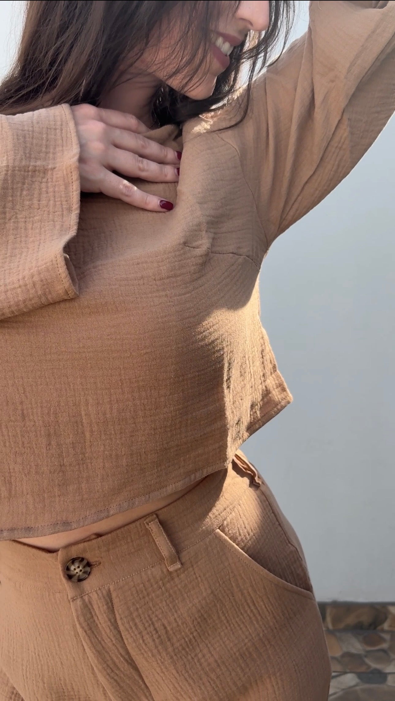 El Top de Muselina es una pieza esencial pensada para acompañarte en días donde buscas comodidad sin renunciar a la sofisticación. Confeccionada en muselina ligera, ofrece una caída suave y un movimiento sutil que aporta frescura y delicadeza a cada look.